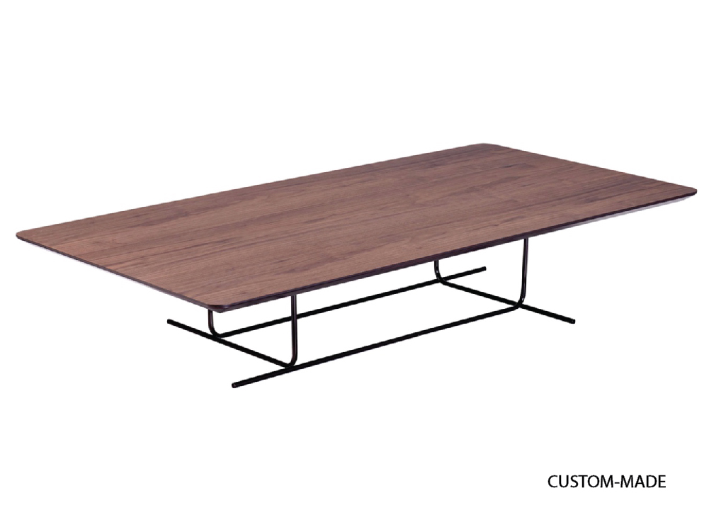 Brazilian coffee table with walnut veneer top and black powder coated legs.